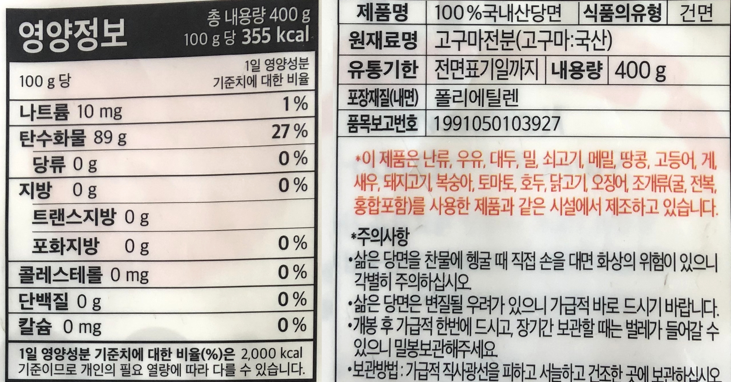 식품의약품안전처고시 '식품 등의 표시기준'에 따르면 알레르기를 유발할 수 있는 물질이 들어갔다면 함유된 양과 관계없이 표시해야 하기 때문에 이를 확인 가능, 하지만 단일 원재료로 제조·가공한 식품의 제품명이 알레르기 표시대상 원재료명과 동일한 경우에는 알레르기 표시를 생략할 수 있으니 반드시 원재료명과 같이 확인해야 함